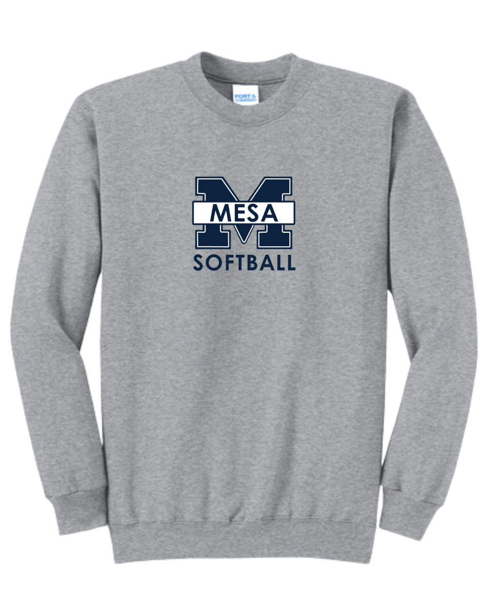 Port & Company Core Fleece Crewneck Sweatshirt - "Mesa Softball" - Athletic Heather / S is backordered and will ship as soon as it is back in stock.